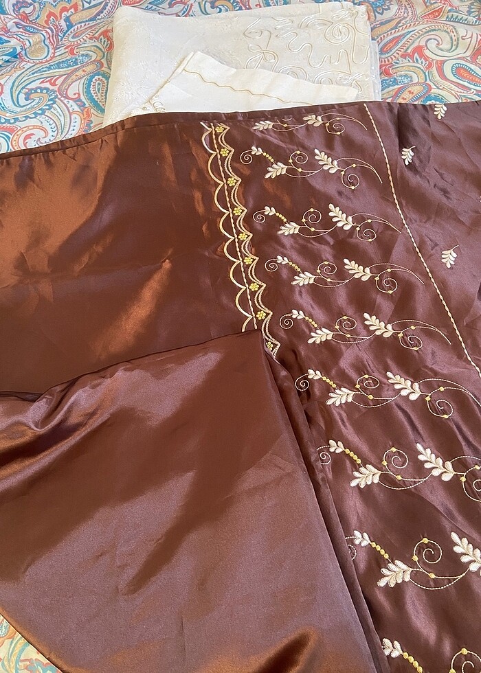 Bir adet yastık kılıfı Çarşaf Yorgan yüzü fermuarlı ( sadece kenarı desenlidir) Yenidir kullanılmamıştır
