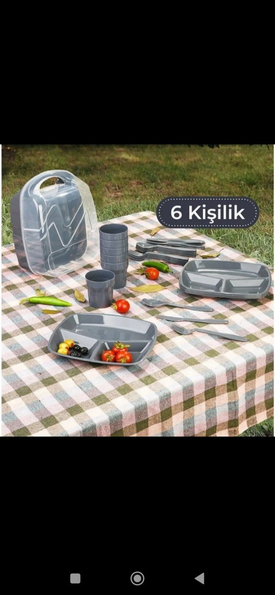 piknik seti 6 Kişilik Gri Plastik Yemek Takımı