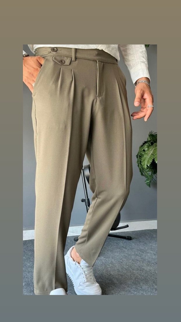 Old money tarzında haki renk pileli erkek pantolon. Az kullanıldı herhangi bir kusuru yok