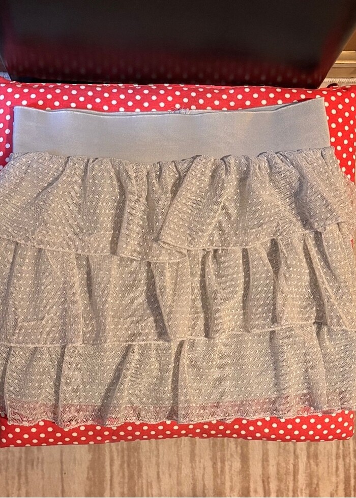 Boyu dizden 1 karışa yakın kısadır belki biraz daha fazla olabilir. Pile detaylari tül seklindedir ama icinde astarı vardır. Kusuru yoktur.