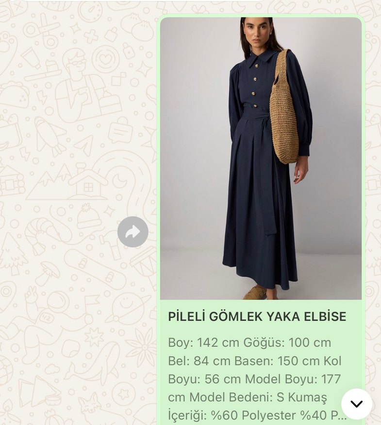Pileli, gömlek yaka ve kemerli uzun elbise. Uzun kollu, regular fit ve %60 polyester %40 kumaş karışımı. Günlük kullanıma uygun, bohem tarzda. Bir kez giyildi sorunsuz defosu yok boyum 165 kilom 57 Touche prive dan aldım