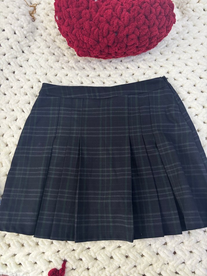 Sentetik kumaştan yapılmış, koyu renkli çok renkli pileli midi etek. Gevşek kesimi ve sade tarzıyla gündelik kullanıma uygundur.