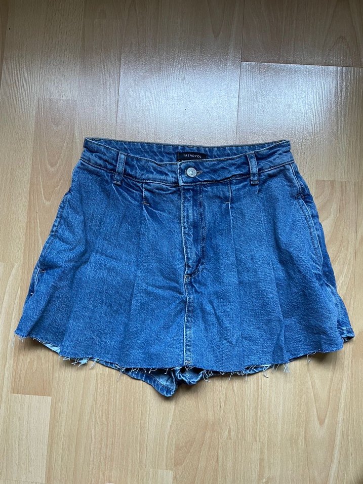 Pileli mini denim şort etek