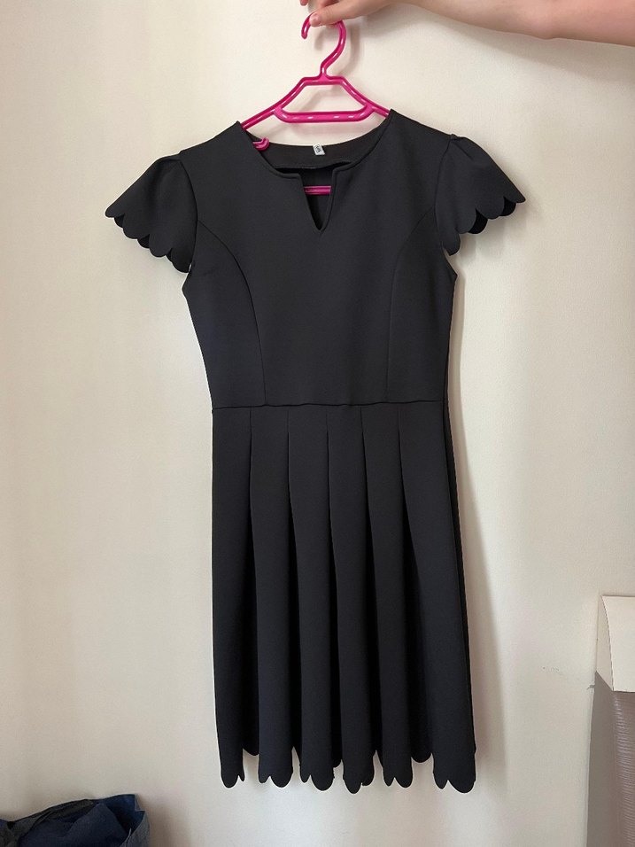 V yaka, kısa kollu, pileli etekli siyah midi elbise 1 2 defa kullanıldı