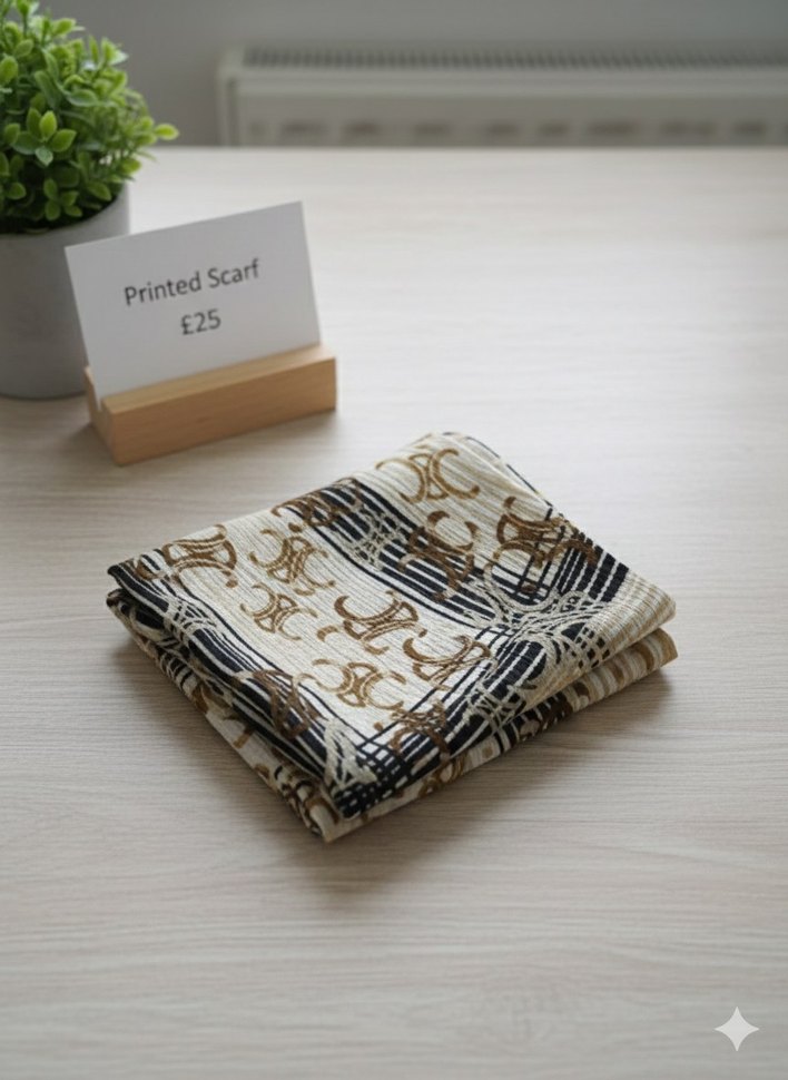 Kadınlar için pilili, kahverengi ve gri desenli, Parisli bohem tarzından ilham alan fular. Yumuşak sentetik kumaştan yapılmıştır, modest ve şık bir görünüm sunar. Fiyatı .