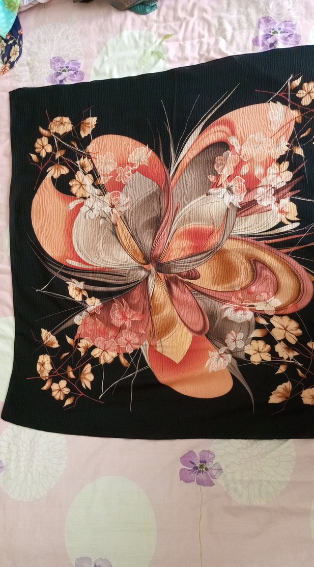 Karanlık çok renkli, pilili tasarıma sahip bohem vintage tarzda kadın fuları, yumuşak sentetik kumaştan üretilmiştir. Hiç kullanılmamıştır
