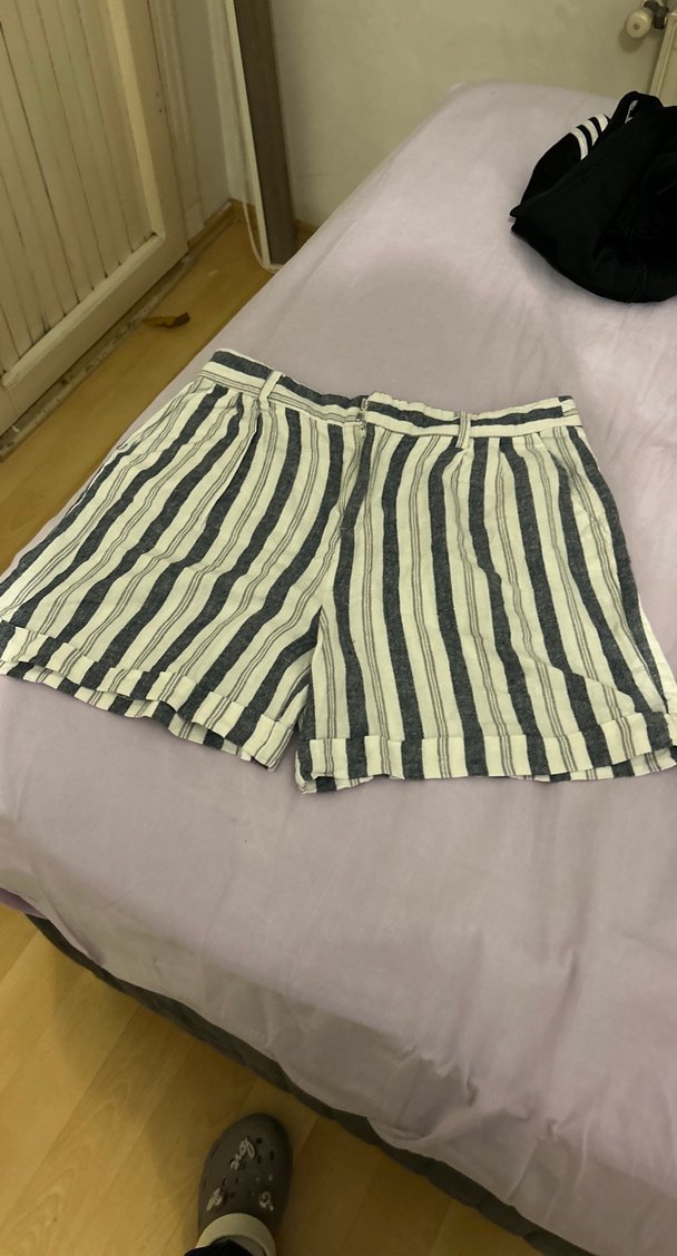 Pilili Çizgili Keten Mini Şort