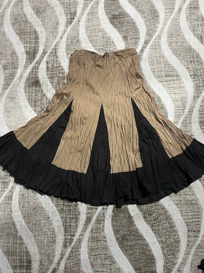 Pilili Kahverengi ve Siyah Uzun Keten Etek
