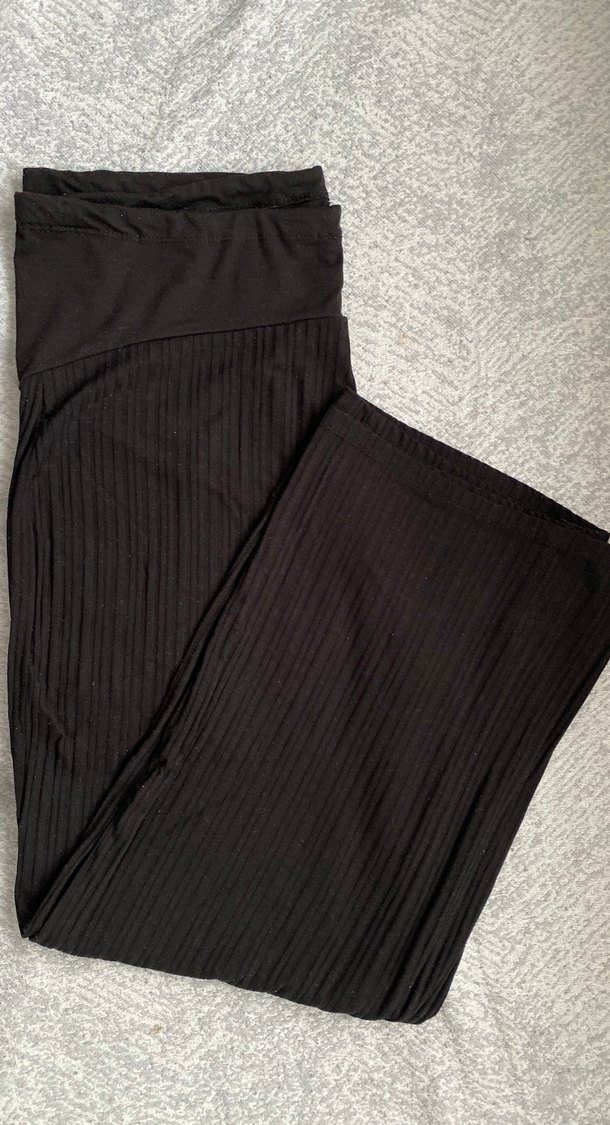 Siyah, pilili, uzun kesim hamile pantolonu, yumuşak sentetik kumaştan üretilmiş, günlük kullanım için uygundur. Çok az tülermesi var (görsellerde mevcut) benimde iki kullanımdan sonra böyle oldu ama çok rahat bir pantolon. Aynı eşofman gibi