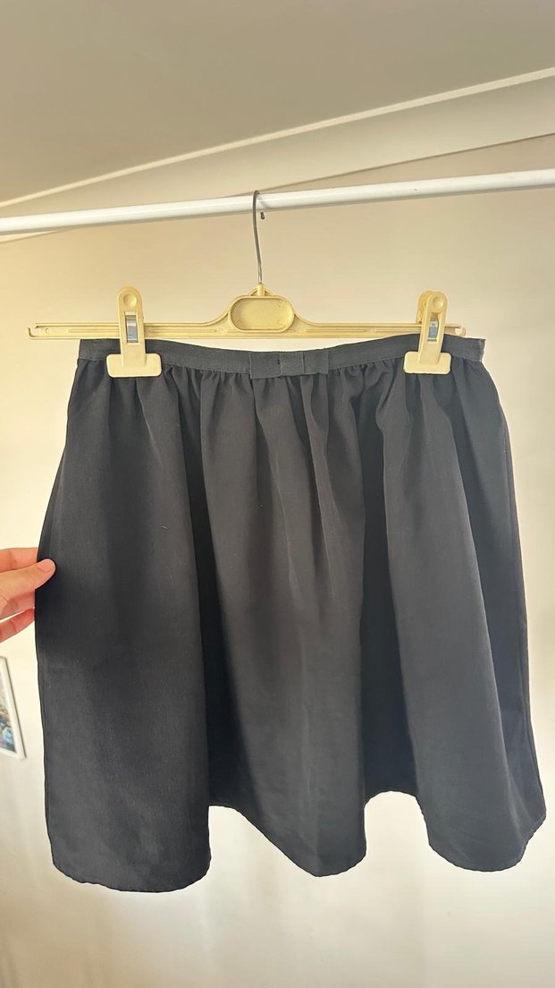 Yumuşak keten kumaştan yapılmış, pilili ve bol kesim siyah midi hamile eteği. Minimalist tarzıyla günlük kullanıma uygundur.