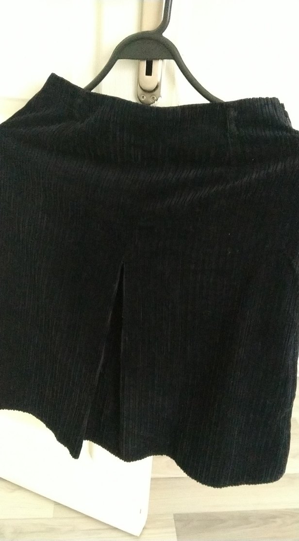 Yumuşak sentetik kumaştan, pilili ve yırtmaçlı siyah hamile midi eteği, ofis için şık ve rahat bir tercih.