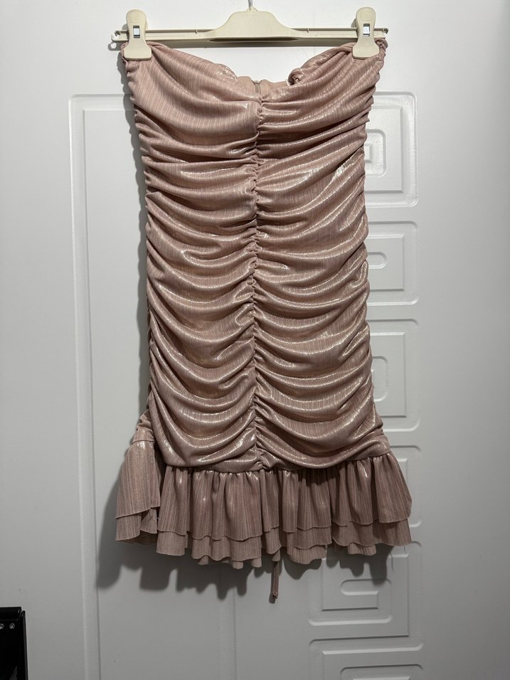 Pilili detaylara sahip straplez yakadan iple bağlamalı özel gün elbisesi. 1 kez giyildi sadece. Yeni gibi tertemiz. Sadece etiketi koparılmış. S beden.