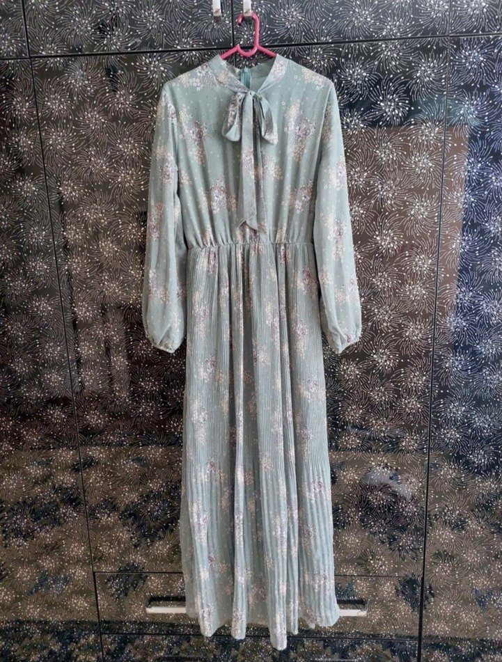 Elbise hiç giyilmedi etiketi tek koparıldı. Temiz ve sorunsuzdur.38 beden giyenlere de olur .Rengi çağla yeşilidir.