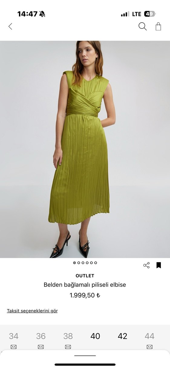 Şık piliseli detaylara ve belden bağlamaya sahip, straplez, parlak haki midi elbise, romantik akşamlar için ideal.