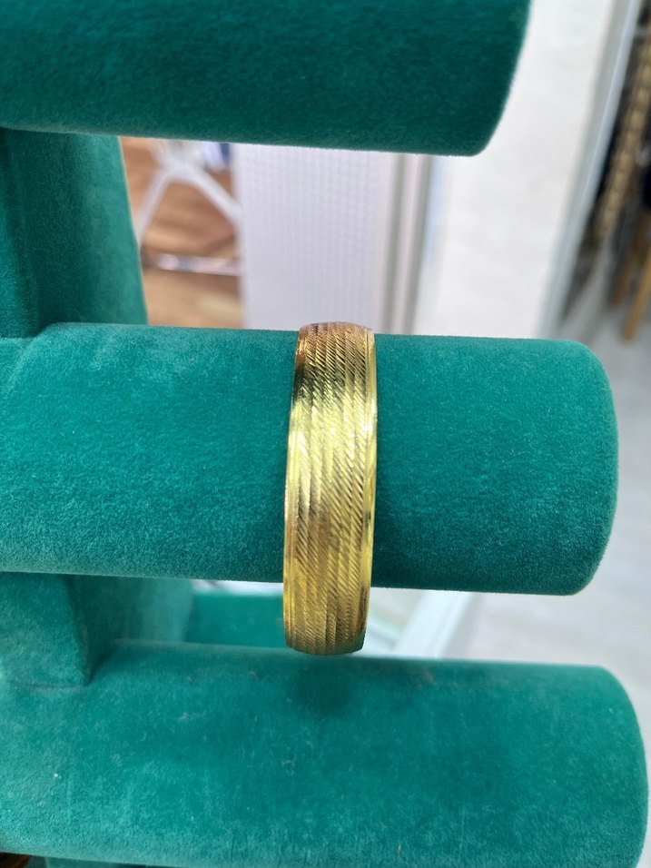 Parlak altın bilezik, pilise detayları ve düz yüzeyi ile vintage bohem tarzını yansıtıyor, düğünler için uygun. ✨