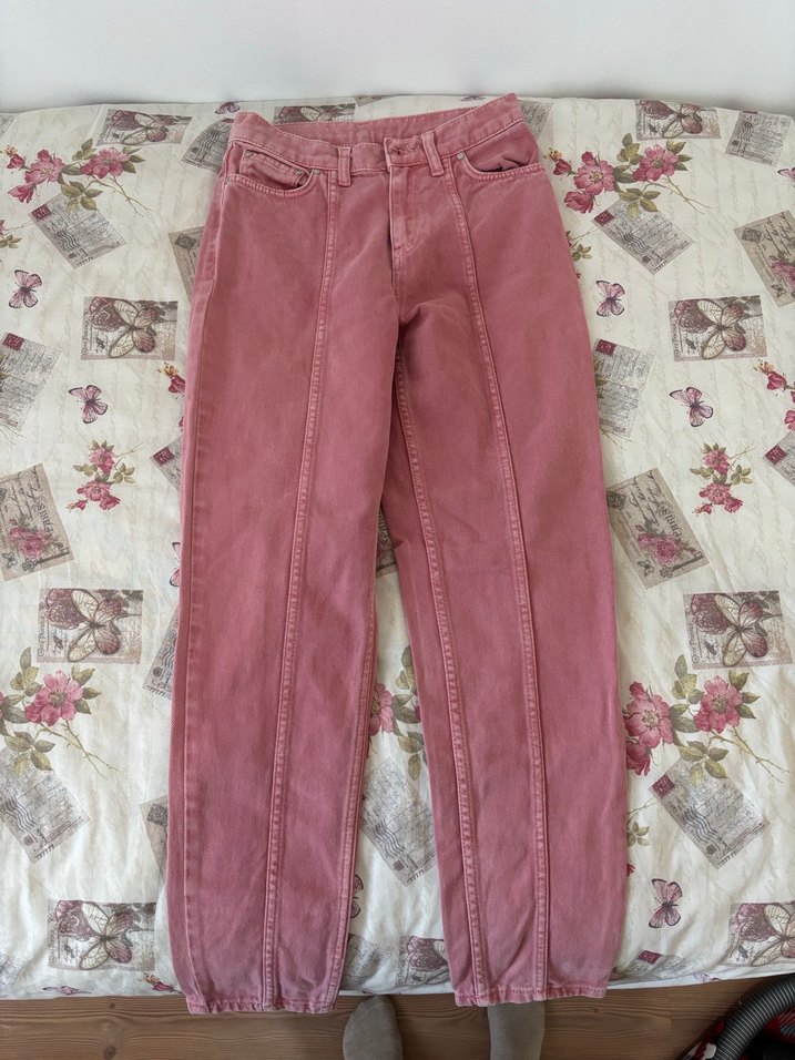 Pilise Detaylı Pembe Bol Kesim Midi Kot Pantolon