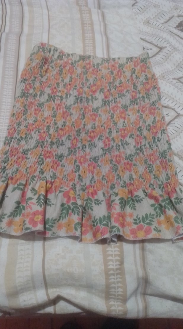 Pastel renklerde, piliseli ve bol kesim bohem midi etek, çiçek desenli ve günlük kullanıma uygun.