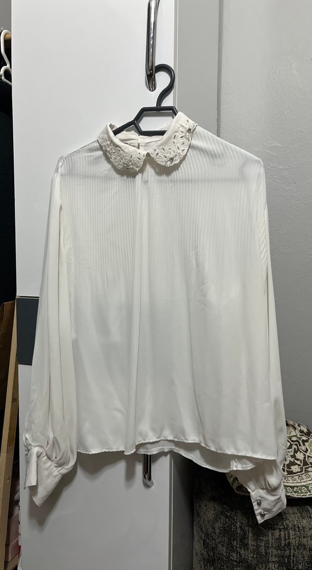 Piliseli detaylara sahip beyaz gömlek, yakalı ve uzun kolludur. Rahat kesimi ve ipeksi dokusuyla trend ofis stiline uygundur.