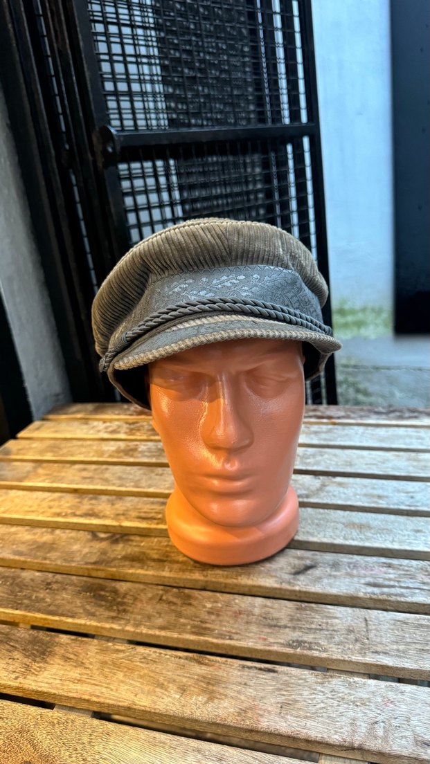 Fitilli piliseli tasarıma sahip, yumuşak süet malzemeden yapılmış şapka. Vintage Paris tarzını yansıtıyor.