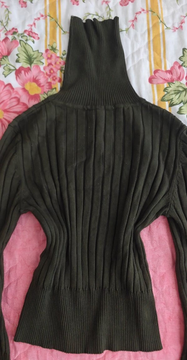 piliseli, balıkçı yaka ve uzun kollu, sentetik kumaştan yapılmış kadın kazak. Normal midi boyda ve trend günlük stil için uygundur. Hiç giyilmedi.