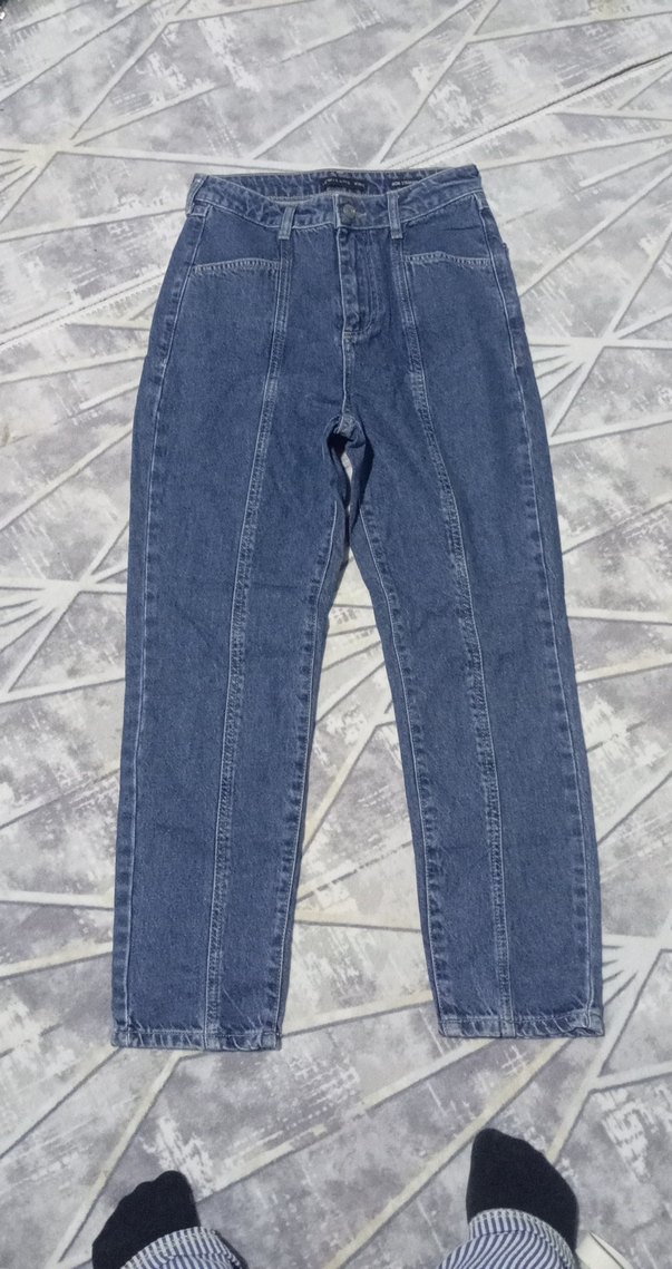 Piliseli detaylı, normal kesim mavi kot pantolon. Bağlama desenli ve midi boy, günlük rahat kullanıma uygundur.