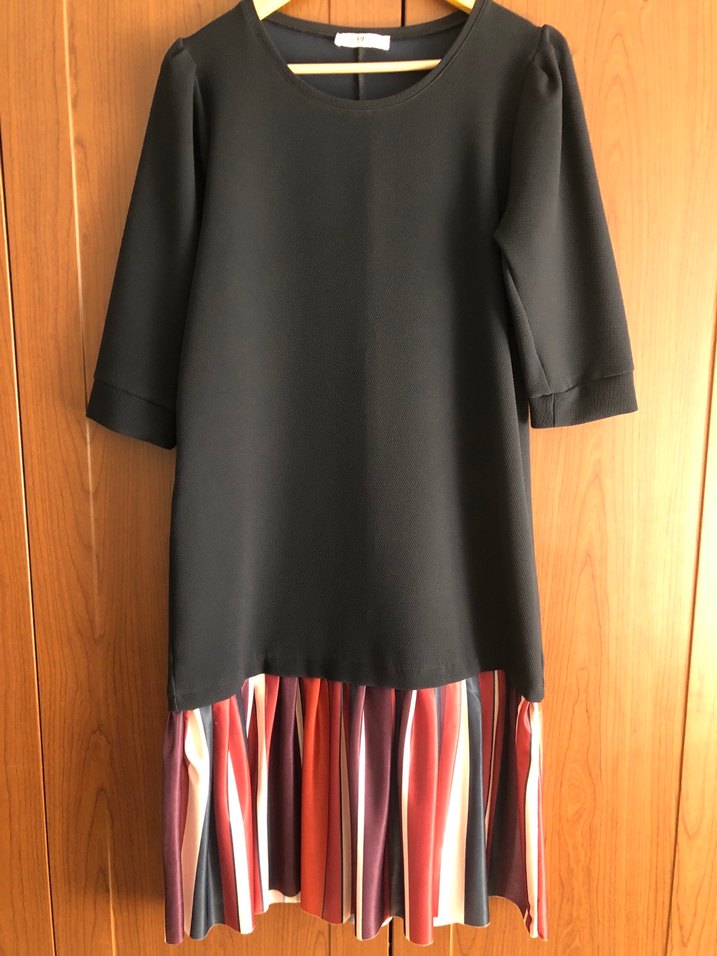 Kısa kollu, yuvarlak yakalı, bol kesim midi elbise.Alt kısmı çok renkli baskılı ve piliseli. Düz sentetik kumaştan, günlük kullanıma uygun.