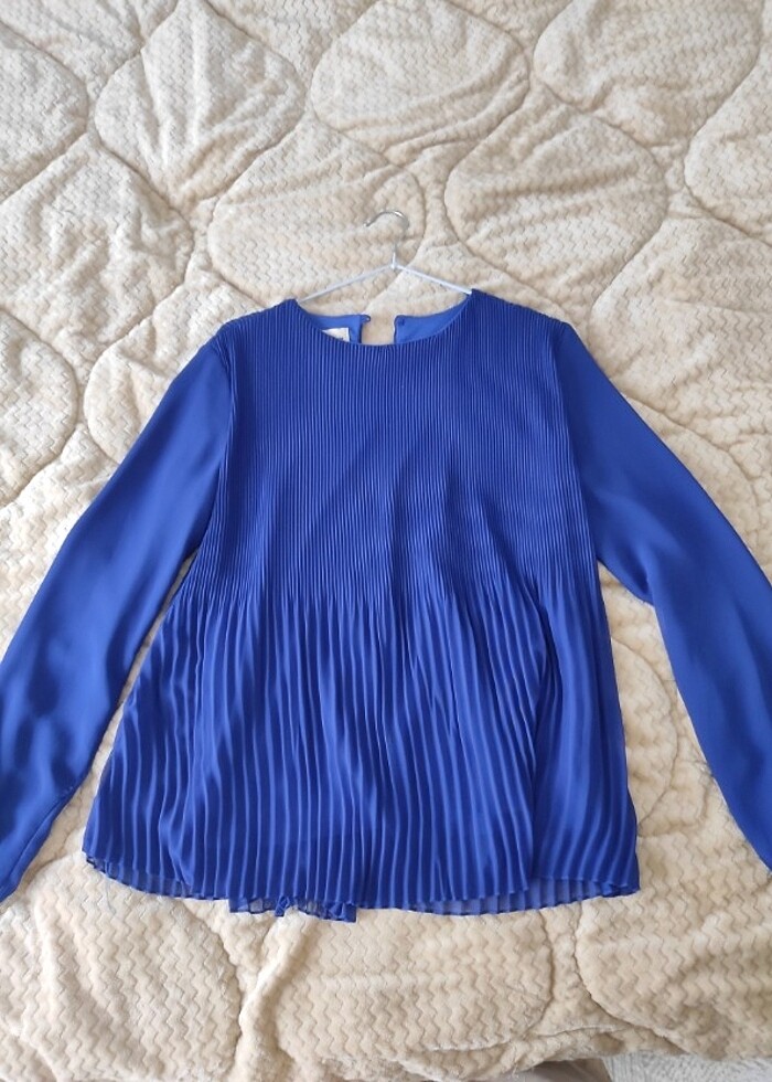 Birkaç kez giyildi ancak tertemiz kullanıldı. Zaten kumaşı çok kaliteli, asla elektriklenmiyor kırışmıyor (kalitesiz şifonlarda bunlar oluyor) Saks mavisi bir bluz. 38 beden ama geniş bir model.