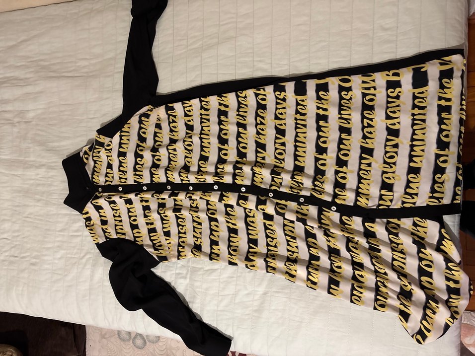 Uzun siyah hamile gömleği, baskılı piliseli ön kısmı ve tekne yaka ile uzun kollu, bol kesim günlük sokak stili için uygundur.