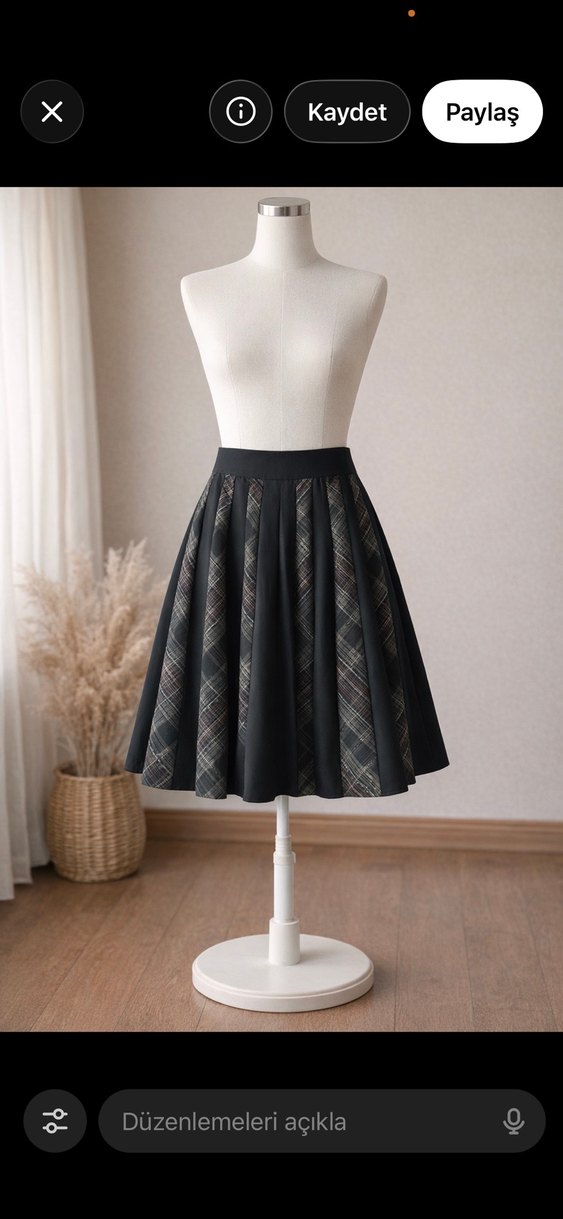 Piliseli, siyah ekose desenli, bol kesim midi hamile eteği. Sentetik kumaştan, ofis için uygun gotik tarzda.boy 78 bel 90 cm içi astarlı
