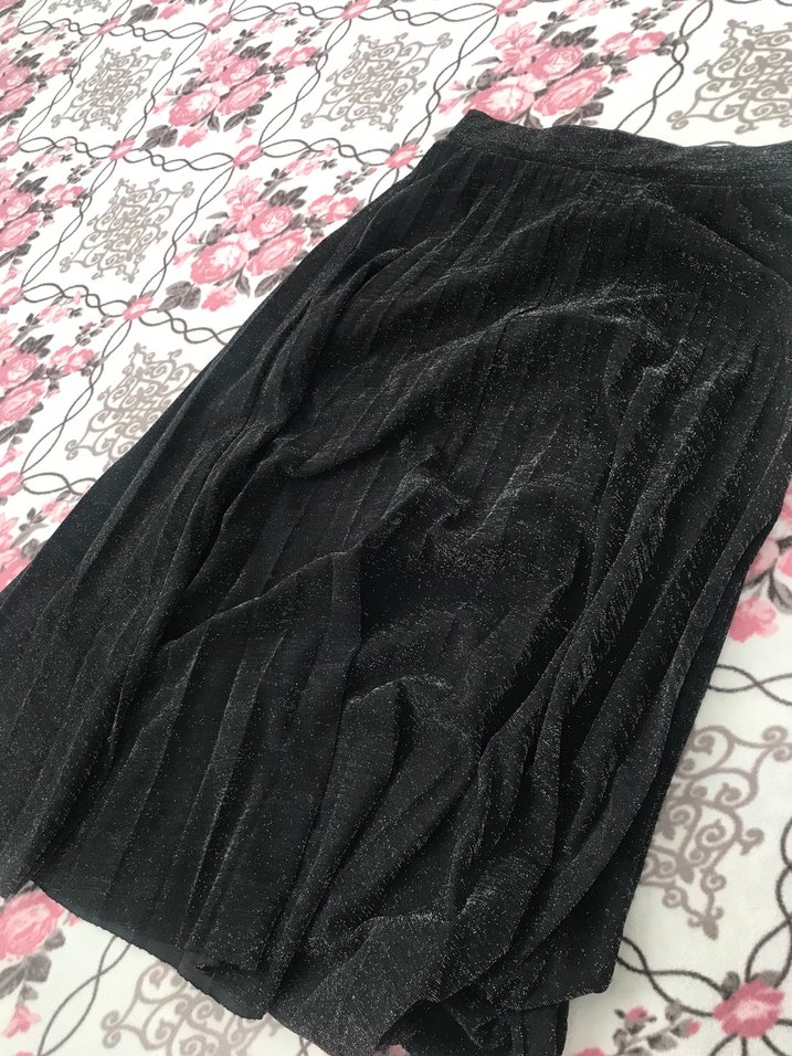 Siyah uzun piliseli etek, rahat kesimi ve yumuşak sentetik kumaşıyla gotik tarz ve romantik akşamlar için uygundur.