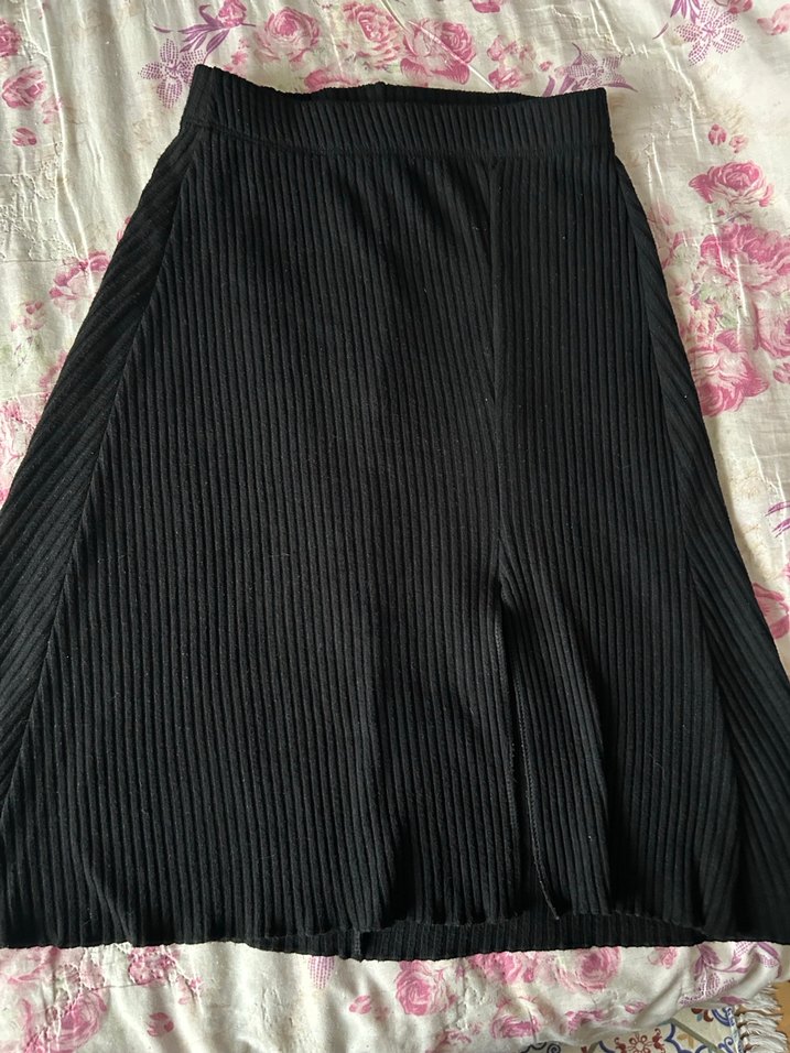 Piliseli detaylara sahip, siyah uzun yırtmaçlı . Yumuşak sentetik kumaştan, rahat ve şık bir seçim.