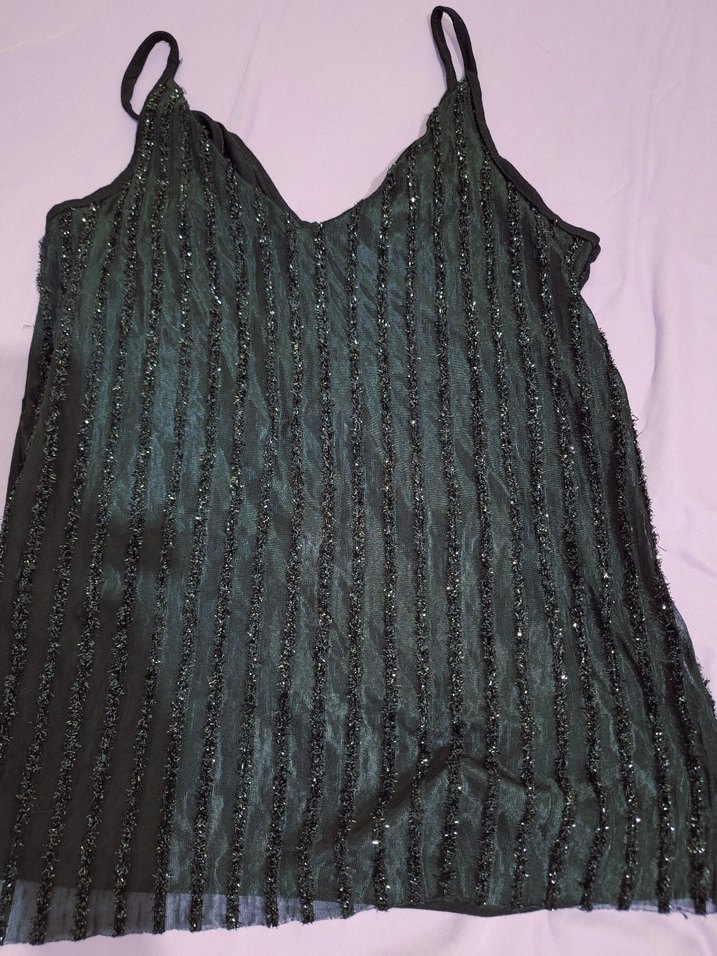 Fitted kesim, V yakalı ve piliseli detaylara sahip kadın atlet. Koyu sentetik kumaştan üretilmiş, gotik ve avant-garde tarzlar için uygun, parti atmosferine uyum sağlar.