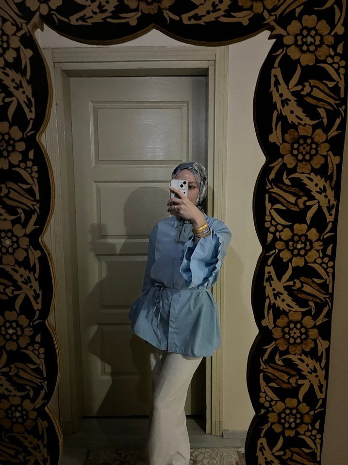 Piliseli Uzun Gömlek Gömlek yaka Ön düğme kapamalı Bel ip bağlamalı Kol piliseli %75 polyester %25 cotton Ürün boyu :73 cm Ölçümlerde (1-3 cm arası değişiklik olabilir) 2 kere giyildi.