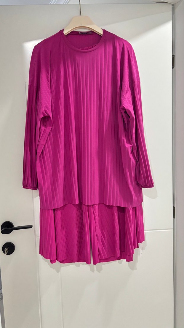 Piliseli Uzun Kollu Pembe Kadın Tunik