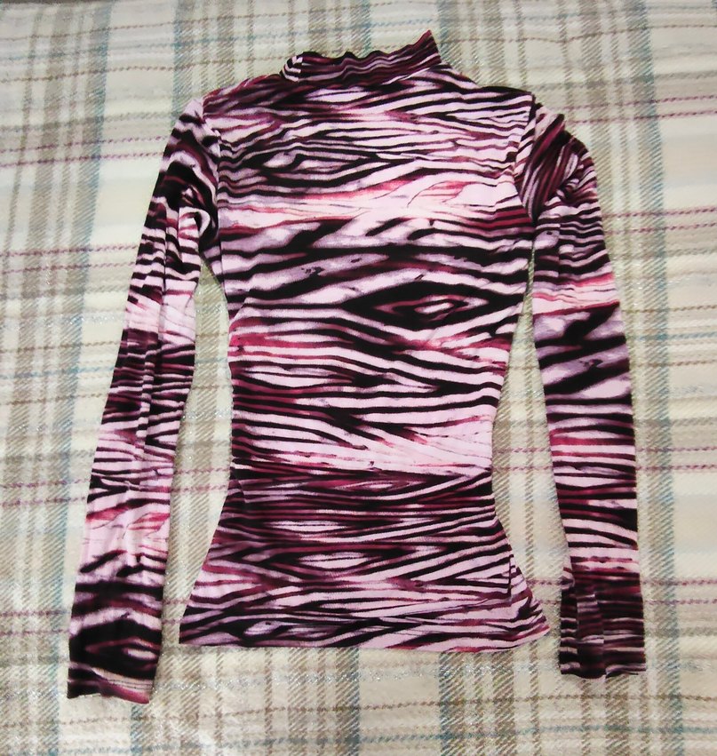 Piliseli, zebra desenli, koyu pembe tonlarında, uzun kollu parmak ve boğaz detaylı. Esnek kumaş. Bedene tam uygun.Bipantolon markasının.TEKLİFE AÇIK.