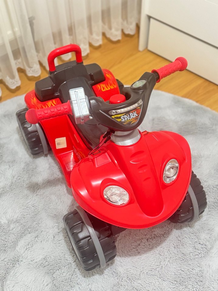 İstanbul için elden teslim…. Renkli kırmızı elektrikli çocuk ATV, dört büyük tekerlek ve kolay kavranan gidonlara sahiptir. İç ve dış mekan kullanımı için uygundur. Bizede hediye gelmişti. Evde kullandık. Kullandığımız süre zarfında tertemiz baktık. Sorunsuz çalışıyor şarj kablosuda mevcut. Sadece korna düğmesi çalışmıyor onun haricinde sorunsuzdur. Galiba 6volt