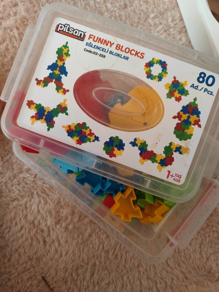 Pilsan Eğlenceli Bloklar, 1 yaş ve üzeri çocuklar için renkli parçadan oluşur. Yaratıcılığı teşvik eden canlı renkli bloklar şeffaf kutuda saklanır.