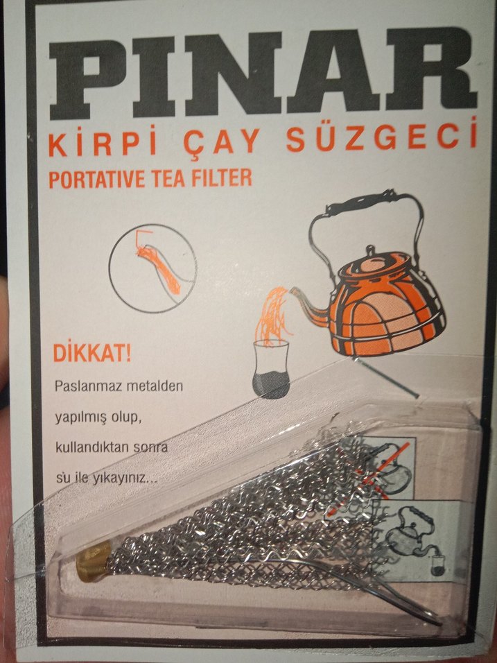 Paslanmaz metalden yapılmış, gri ve turuncu renkli Pinar Kirpi çay süzgeci. . ☕ demlik ucuna takılır ve aylarca kullanılır hiçbir sorun olmaz Paslanmaz