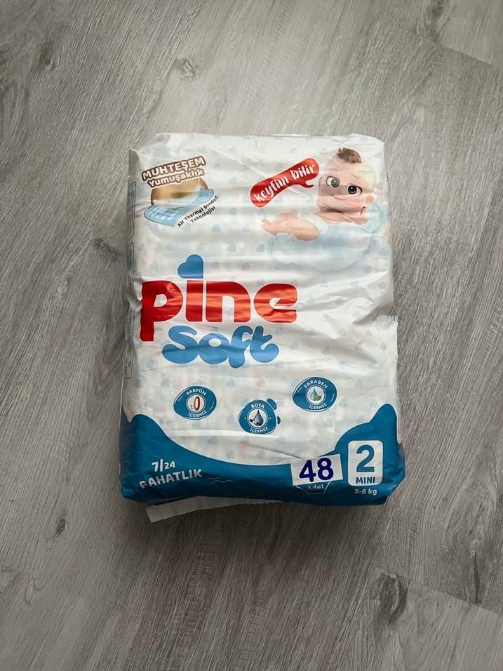 Pine Soft marka 3-6 kg bebekler için No:2 Mini boy 48 adet bebek bezi, rahatlık ve sızıntı koruması sağlar.