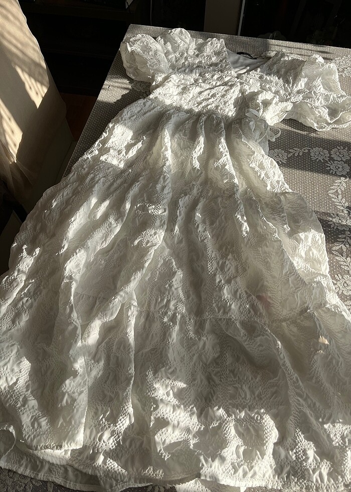 Lavanta bahçesinde giymek için almıştım 1 kere kullanıldı. Temiz kullanım, içi astarlı, midi boy, balon kollu, önü V yaka efil efil yazlık elbise yandan gizli fermuarlı M beden (L uyumlu)
