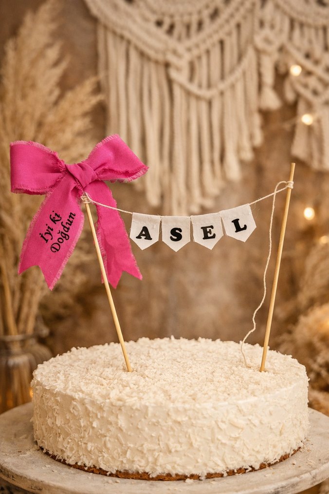 Pastel pembe renkli, üzerinde 'İyi ki Doğdun' yazan kurdele ve 'Asel' yazılı küçük bayraklı pasta süsü. Doğum Günü flaması. Gerçek fiyattır. Farklı isim için iletişime geçebilirsiniz.