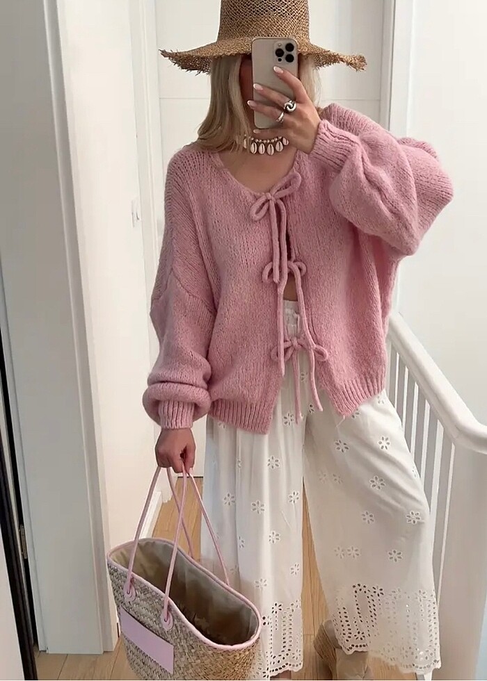 kurdela detaylı kazak bir kez giyildi pembe tonu fotoğrafı gibi gıcık bir pembesi yok söküğü yırtığı yok yeni