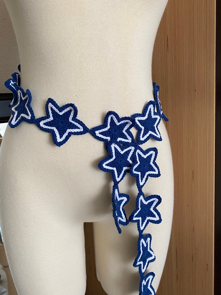 Lacivert-beyaz Pinterest örgü yıldız kemer