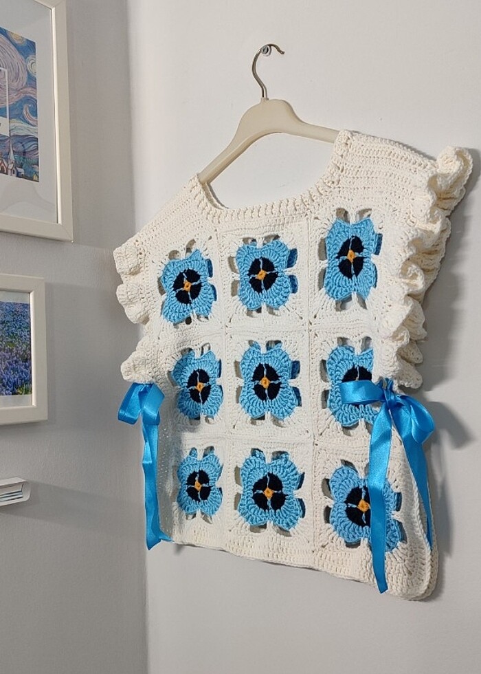Çiçek motifli 38 beden kadın süveter. Pamuk iple örülmüştür, yanları kurdele detaylı önlük model eşsiz bir süveter. Motif pinterestten ancak model bana aittir. Anne kız kombini olarak da hazırlanabilir. lütfen iletişime geçiniz