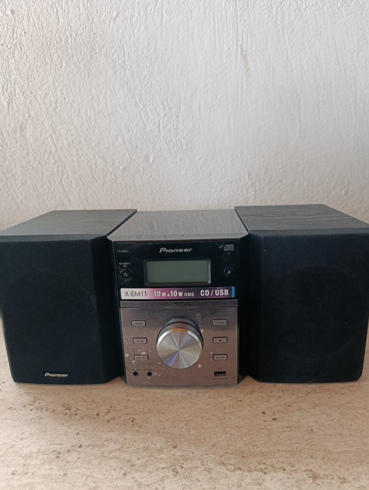 Gri renkli Pioneer X-EM11 müzik sistemi, CD ve USB oynatma özelliklerine sahiptir. 10W+10W RMS çıkış gücüyle net ses verir, ses ve bas kontrolü bulunur.