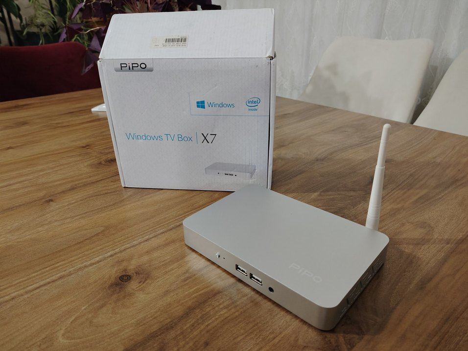 PiPO Windows TV Box X7, Intel işlemci ve Windows işletim sistemi ile beyaz renkte masaüstü bilgisayar. Çoklu USB bağlantı noktaları bulunur. Pipo X7 mini bilgisayar ürün sıfırdır detaylı bilgi resimlerde vardır