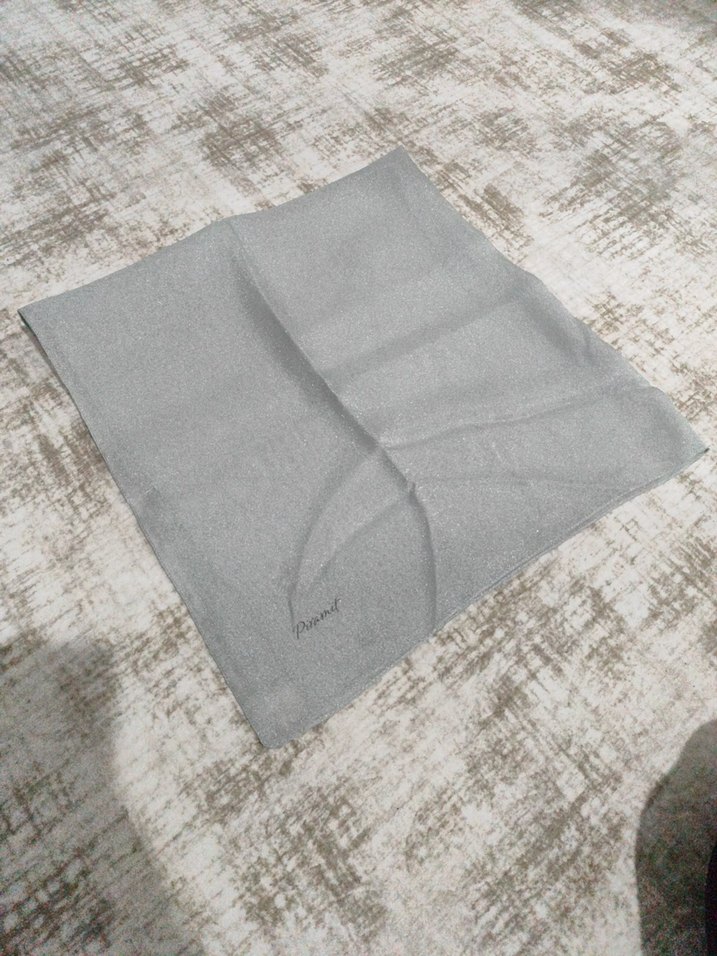 Düz gri renkte, desen içermeyen erkek mendili, yumuşak kumaşla basic ve çağdaş tarz için uygundur.