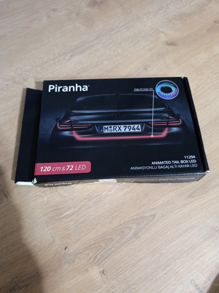 Piranha marka, 120 cm uzunluğunda, 72 LED'li animasyonlu bagaj altı kayan led siyah renktedir.