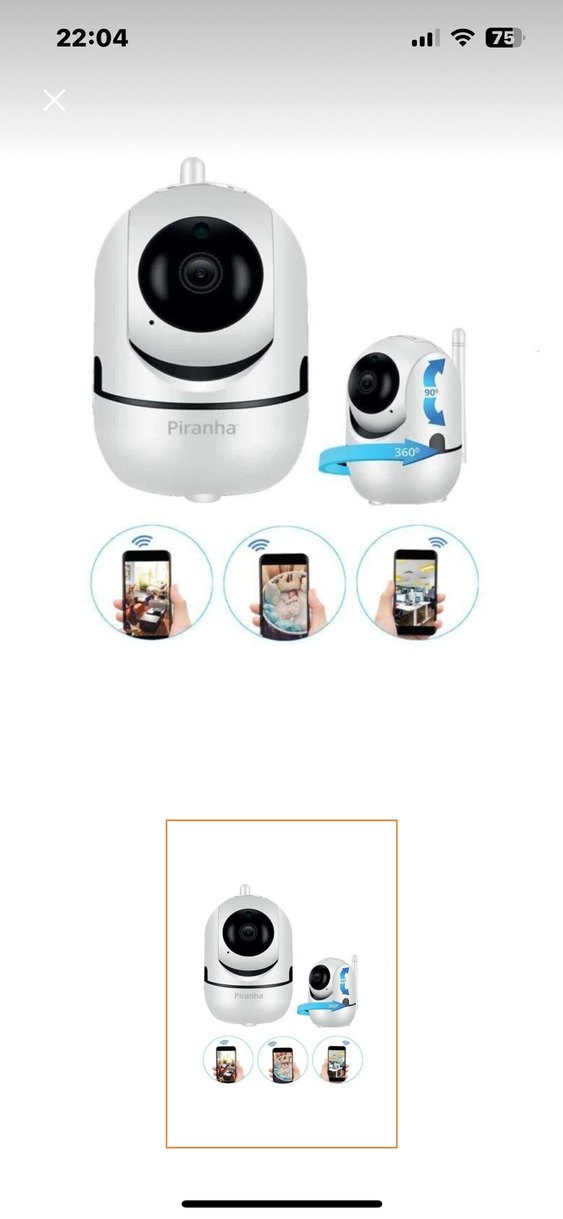 Hediye geldi açıp denedik kutusu atıldı Piranha beyaz bebek kamerası, 360° yatay ve 90° dikey dönebilen başlığıyla geniş görüş sağlar. Kablosuz bağlantı ile telefonlarda görüntüleme yapılabilir.