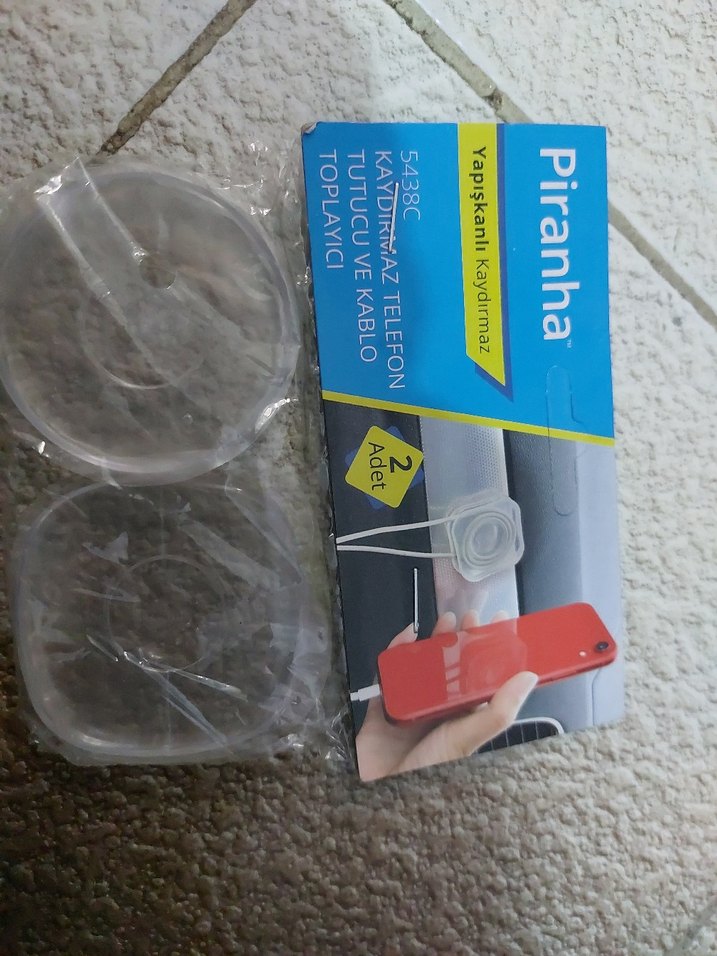 Piranha markalı kaydırmaz yapışkanlı gri telefon tutucu, telefon, oyuncu, ütü ve kablo tutmak için uygundur. Pakette 2 adet bulunur.